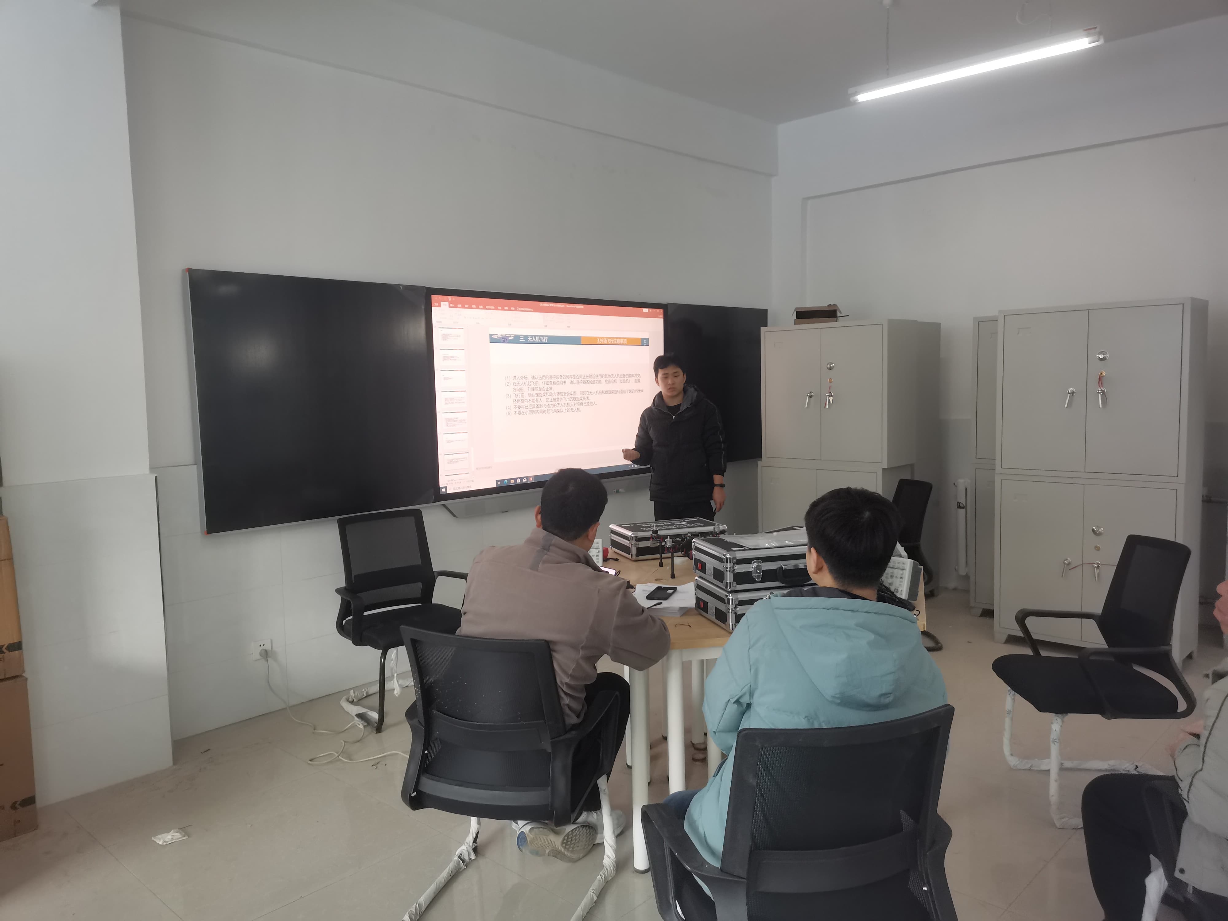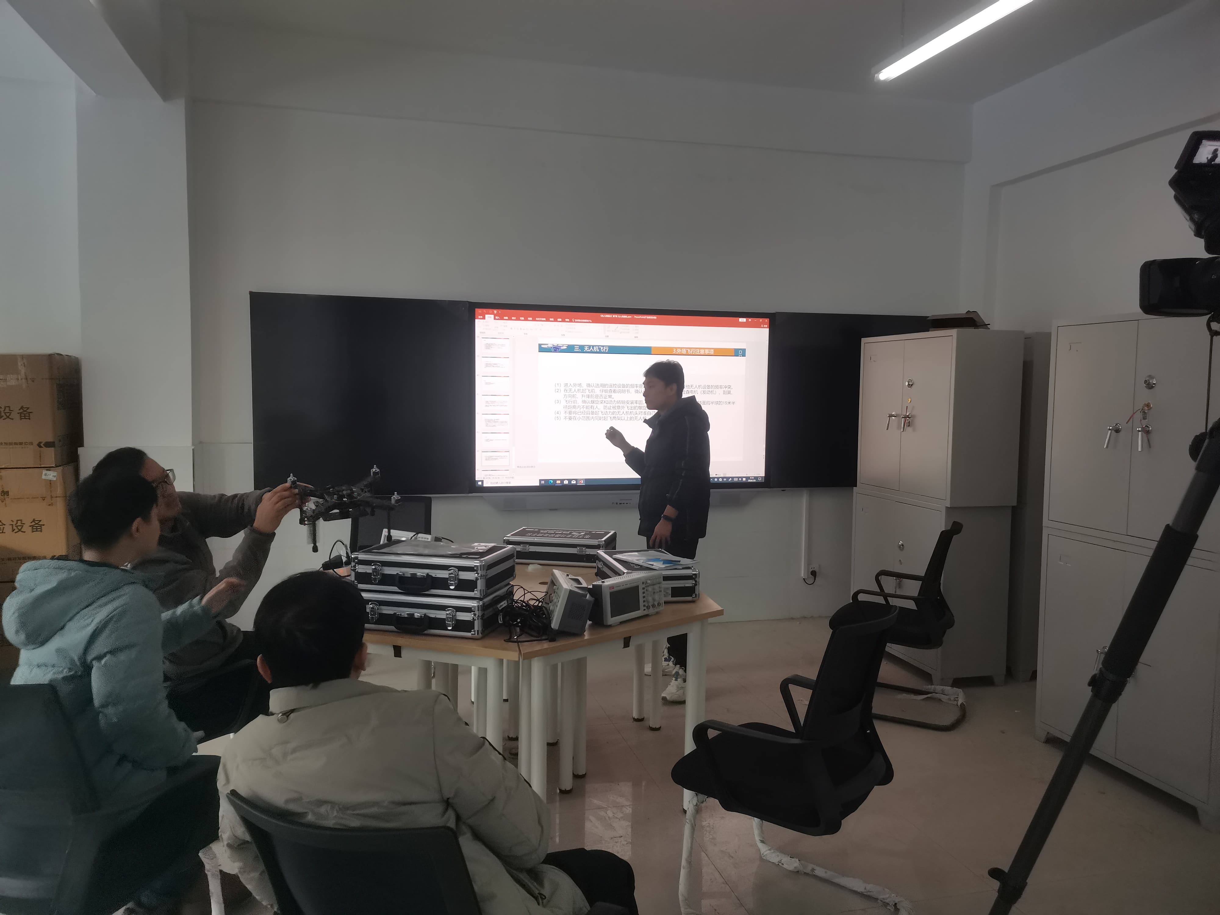 工程師在展示并講解無人機(jī)遙控器