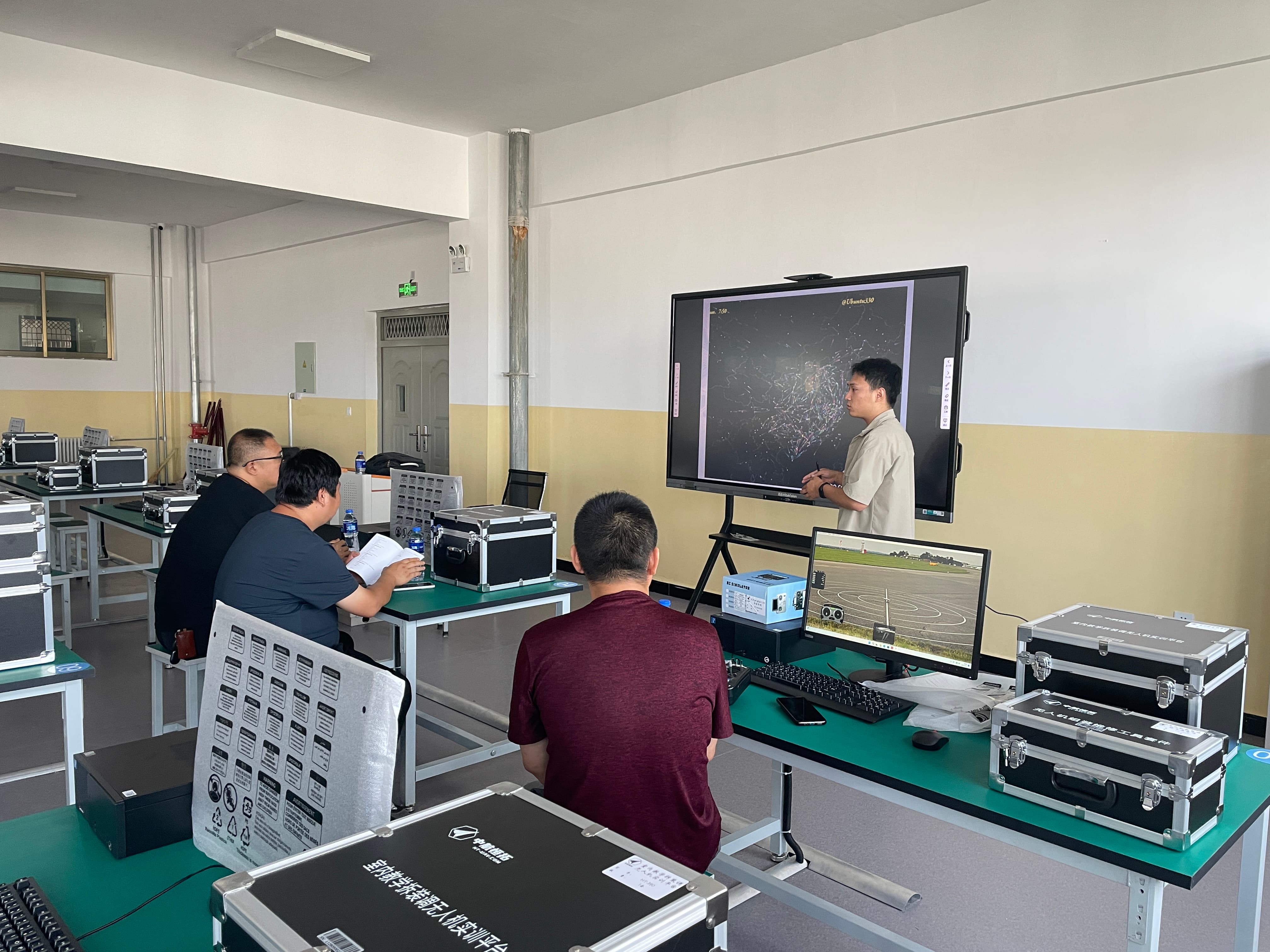 工程師在講解關(guān)于無人機實訓室的一些注意事項
