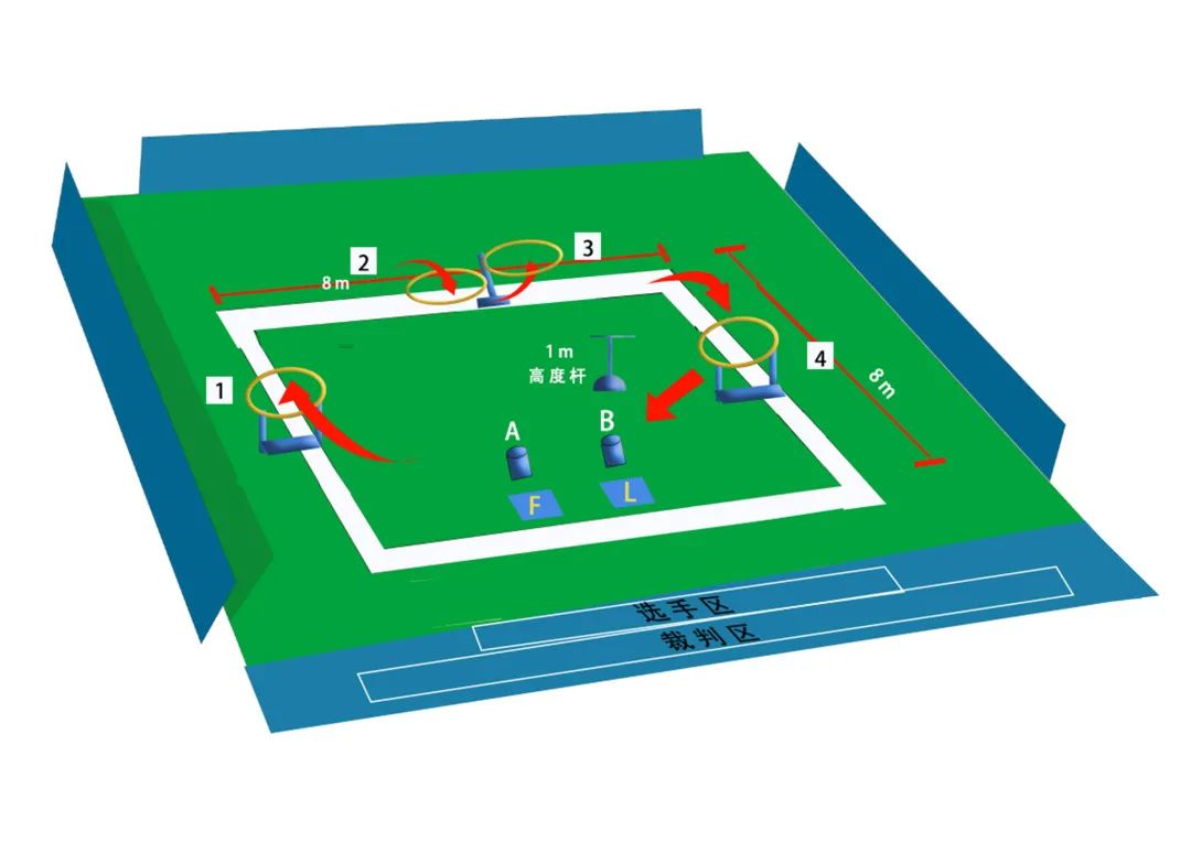 競(jìng)速飛行環(huán)節(jié)由每個(gè)參賽隊(duì)伍派出2名選手,完成競(jìng)速飛行任務(wù)。裁判對(duì)垂直起飛高度偏移、垂直起飛兩側(cè)偏移、四面懸停高度偏移、四面懸停兩側(cè)偏移、障礙穿越、是否出賽道等指標(biāo)進(jìn)行評(píng)判打分。