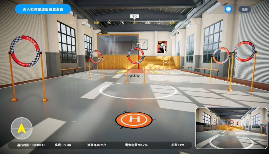 無人機(jī)穿越障礙模塊通過操作FPV無人機(jī)穿越多個(gè)設(shè)定的賽道障礙進(jìn)行訓(xùn)練,來提升無人機(jī)駕駛技能。