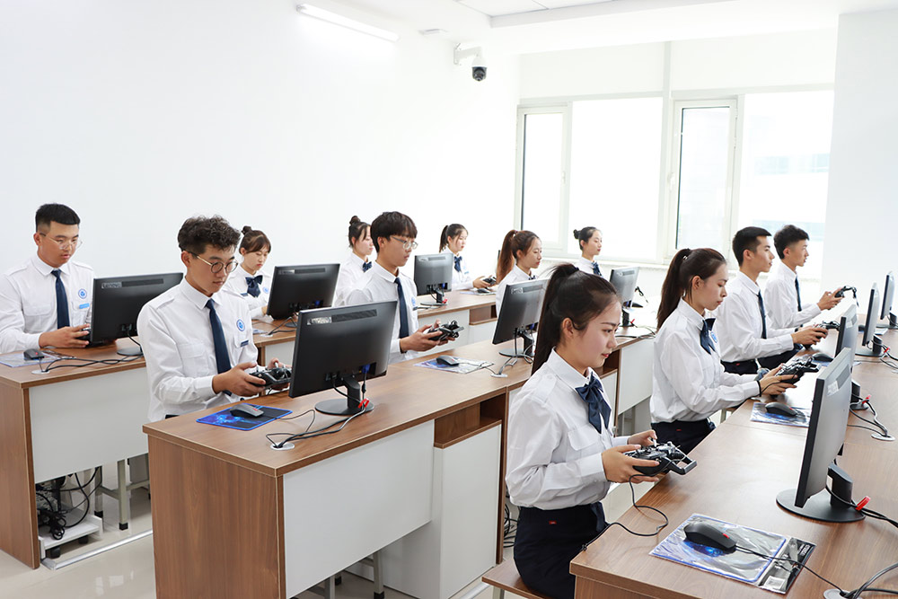 學(xué)生在練習(xí)無(wú)人機(jī)模擬仿真飛行