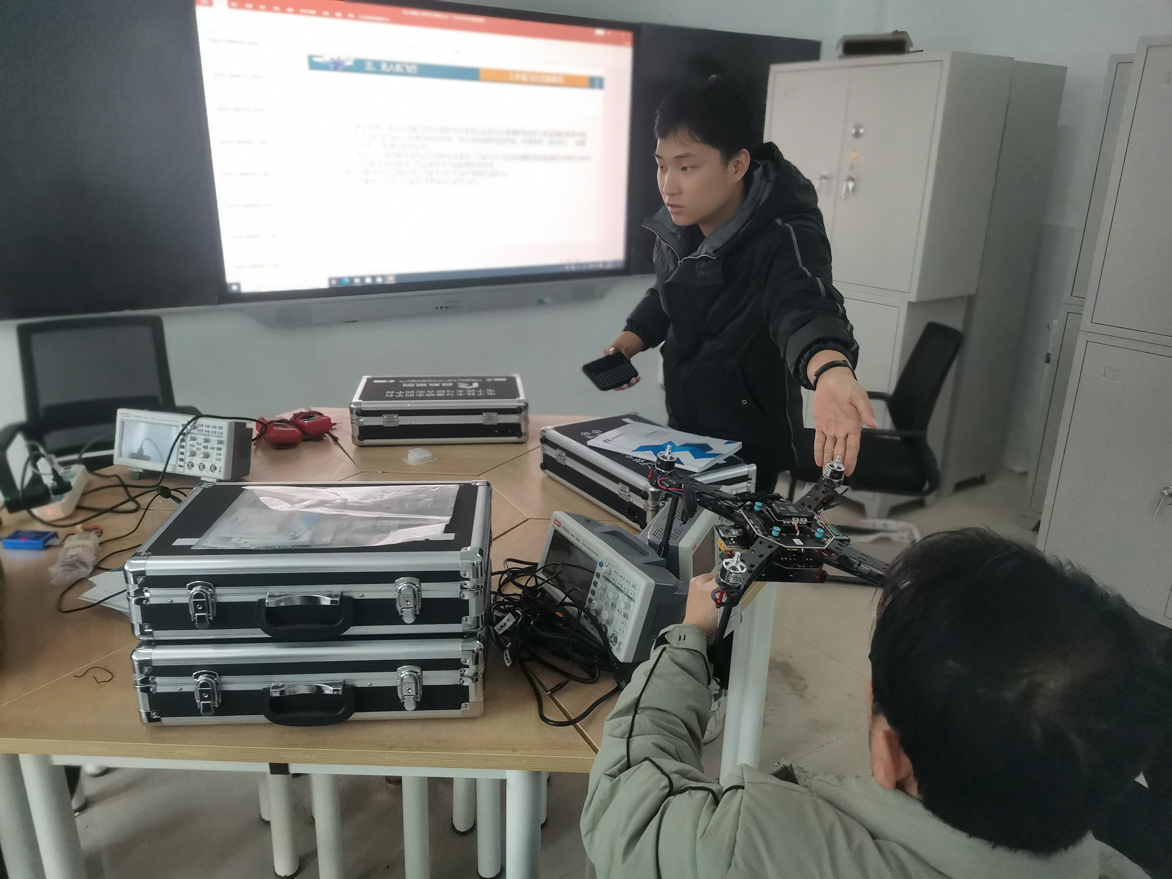 工程師在展示并講解無人機(jī)遙控器