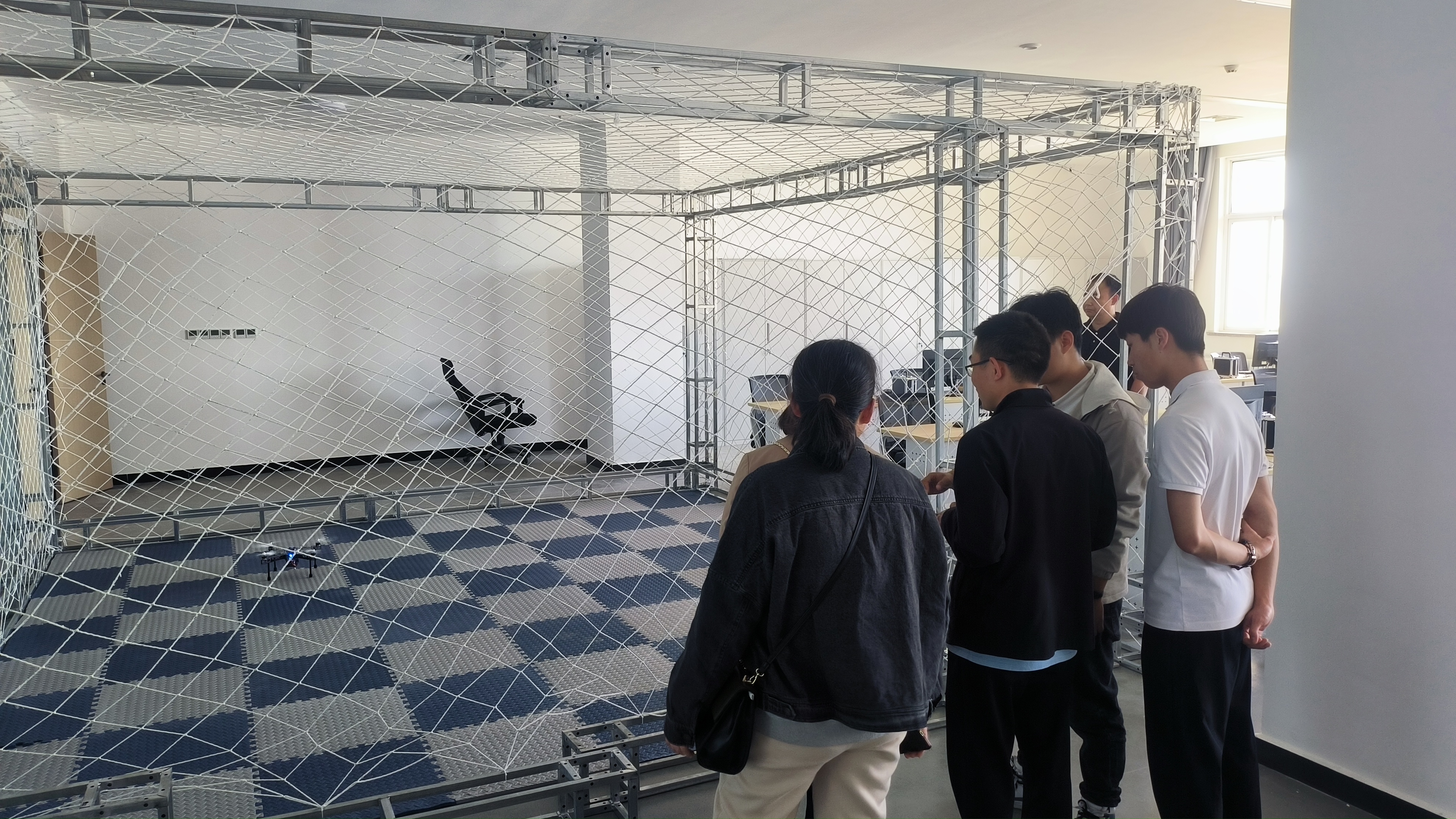 我司工程師在講解無(wú)人機(jī)飛行安全防護(hù)場(chǎng)地如何使用