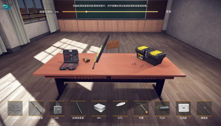 無人機(jī)虛擬仿真系統(tǒng)軟件包含七大應(yīng)用模塊,包含無人機(jī)組裝調(diào)試、無人機(jī)飛行訓(xùn)練、無人機(jī)投擲、無人機(jī)穿越障礙、無人機(jī)電力巡檢、無人機(jī)滅火、無人機(jī)水域救援。
